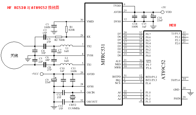 MF RC530是Philips公司最新推出的一种非接触式通讯模块,是一块高集成度非接触式时钟频率为13.56MHz芯片,该芯片使用了先进的调制和解调技术,支持适用于各种基于ISO/IEC14443A标准,完全支持13.56MHz下所有非接触式通讯协议,适用于高性能以及单电源的非接触式通信的应用场合。